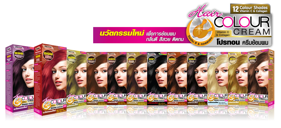 New Innovation for Hair Colouring with Vitamin C and Collagen. Give the prominent brilliant colour 12 shades. Easily absorbed through hair fiber, provides long lasting colour with soft touch and radiant shine, completely cover grey hair with natural looking colour without stressing yours. นวัตกรรมใหม่เพื่อการย้อมผม กลิ่นดี สีสวย ติดทน ผสานคุณค่า วิตามิน ซี และคอลลาเจน ส่องประกายสีผม 12 เฉดสี ให้เจิดจ้า เด่นชัด ด้วยเนื้อครีมที่ซึมซาบเร็ว ให้สีติดทนนาน พร้อมสัมผัสผมนุ่มสลวย เปล่งประกายเงางาม ปกปิดผมขาวได้แนบสนิท แลดูเป็นธรรมชาติ